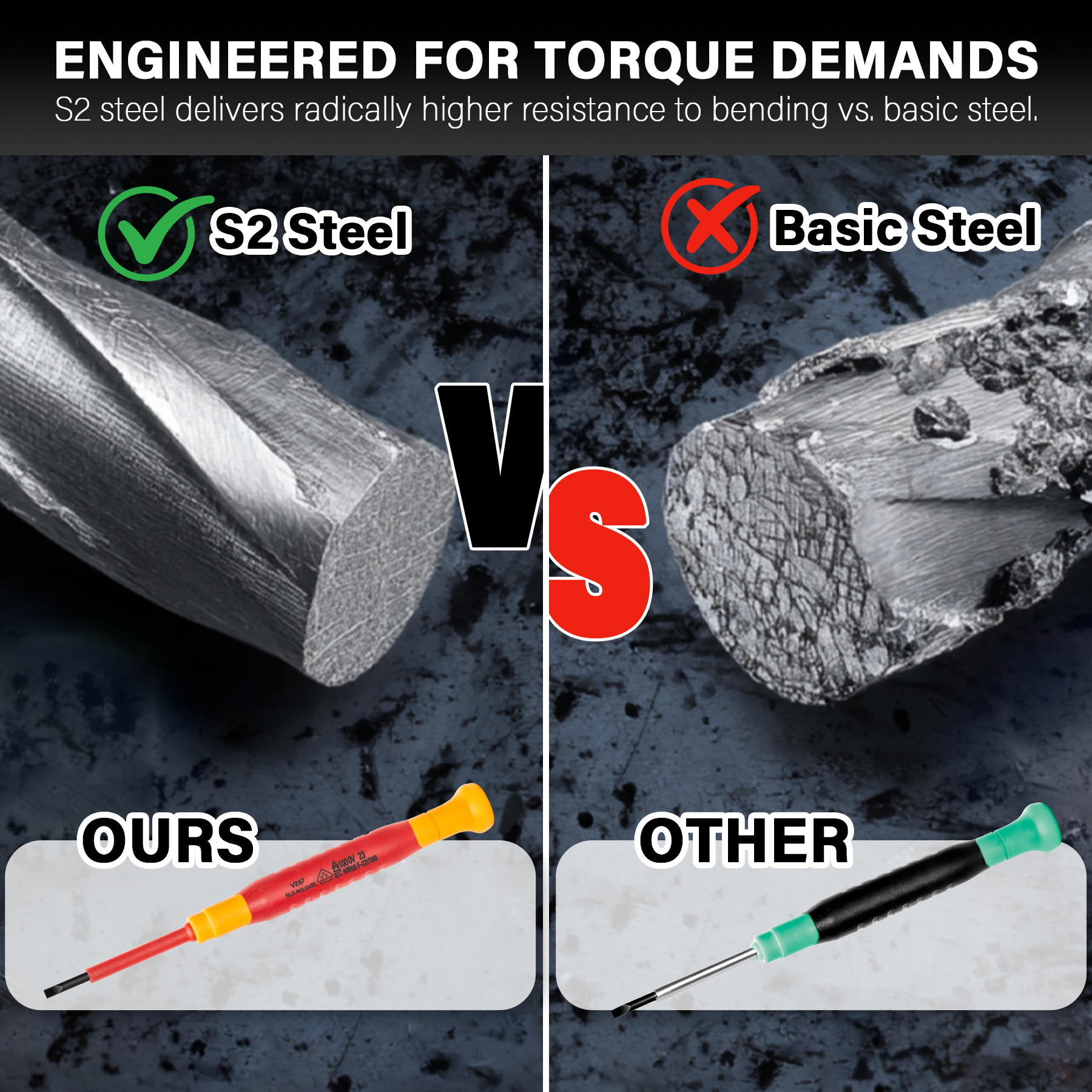 - [Forged S2 Steel & Magnetized Tip]: Crafted from superior S2 alloy steel, this magnetic screwdrivers set offers 30% higher torque resistance and anti-bend durability compared to common steel. The magnetized tip securely holds screws to prevent loss and stripping for precise work.