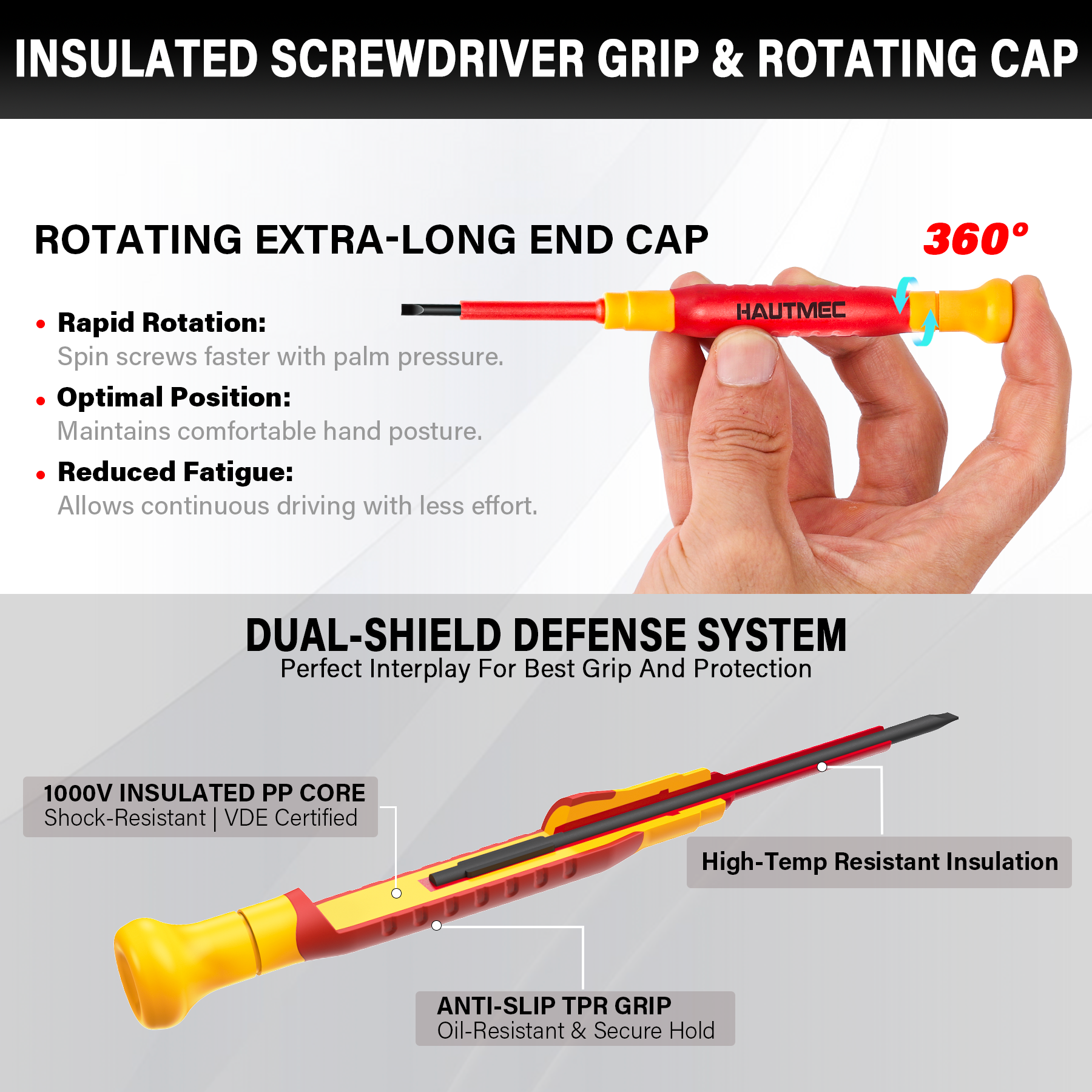 HAUTMEC 6PCS Small Precision Screwdriver Set 1000V Mini Insulated Screwdriver Set with VDE Certified, S2 Steel, Slotted and Phillips Magnetic Tip for Electrical Work, HT0313