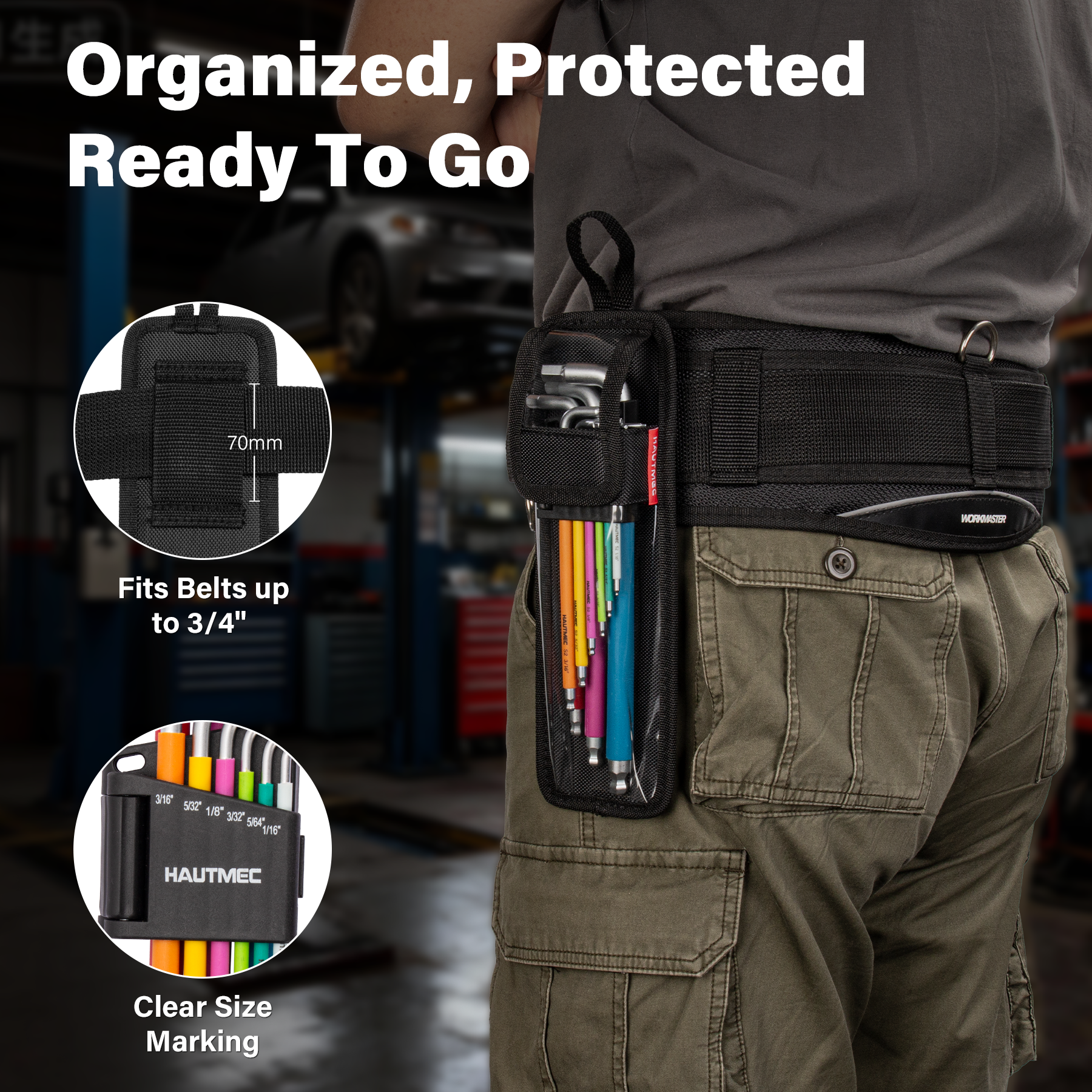 ● [Color-Coded & Professional Portable Storage]: In this large allen wrench set, each tool is securely held in a high-quality ABS plastic holder with clear size markings. The entire set organizes into a heavy-duty 1680D tool pouch, featuring a wide reinforced belt loop (up to 2-3/4"(70mm)) and a thick black webbed handle for convenient carrying and easy portability on any job site.
