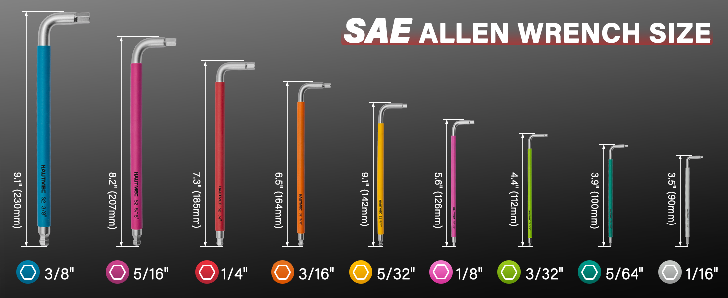 ● [Professional Sized SAE Set]: Designed for technicians who rely on their tools. This 9PCS hex wrench set delivers dependable performance for equipment assembly and facility maintenance, making it ideal for automotive repair, industrial machinery, and fabrication workshops. The precisely sized keys (1/16, 5/64, 3/32, 1/8, 5/32, 3/16, 1/4, 5/16, 3/8 inch) ensure an efficient workflow for every critical SAE fastener.