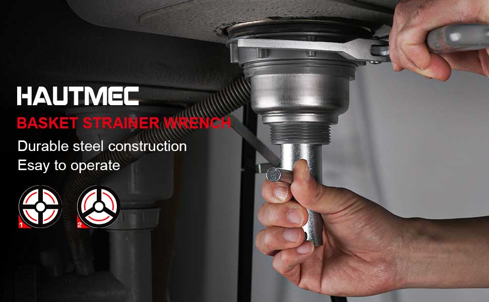 HAUTMEC Basket Strainer Wrench, Double Working End, Universal Sink Basket Strainer Wrench PL0029