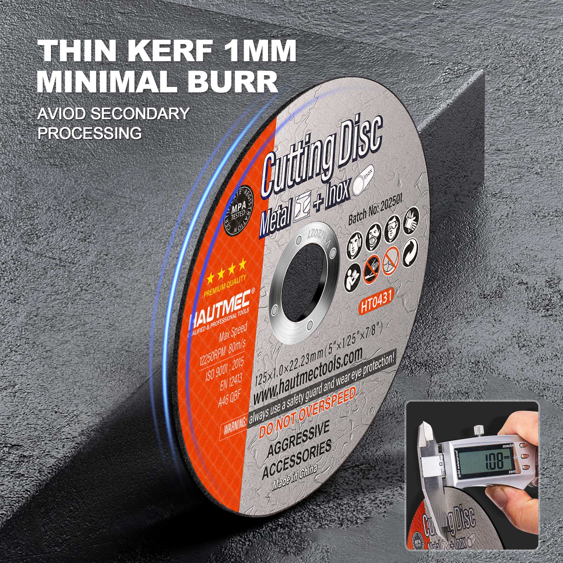 HAUTMEC Expert Grade Cut Off Wheels 125mm x 1.0mm x 22.23mm, Thin Grinding Disc for Cutting Metals, 10 Pack General Purpose Cut Off Blade for Most Angle Grinder - HT0431