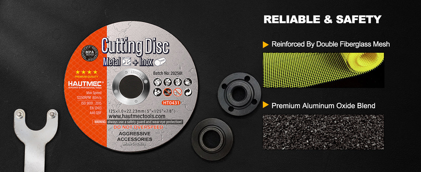 - Proprietary aluminum oxide grain combination for aggressive cutting performance, double fiberglass mesh reinforced for further safety and durability, and manufactured to EN12413 and MPA approved