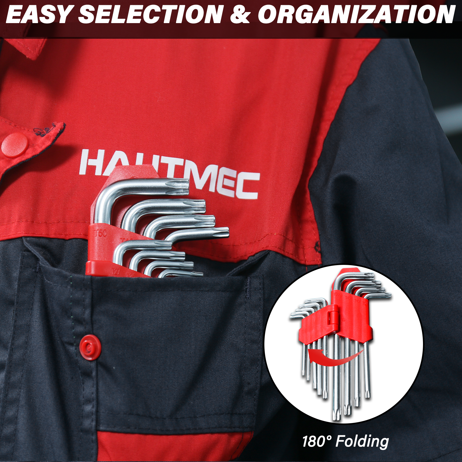 HAUTMEC Star Key Wrench Set, 9-Piece Torx Star Wrenches- Chrome Vanadium Steel and Drilled tips for Tamper Resistant Fasteners, HT0222-SS