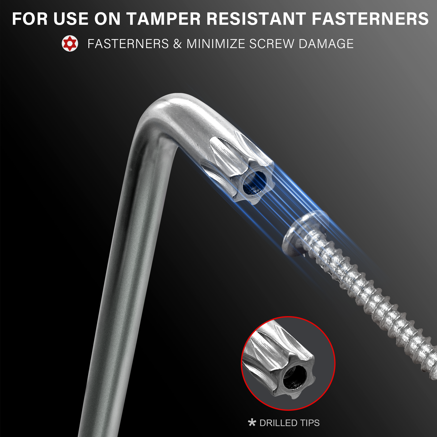 - STAR END AND DRILLED TIP - Drilled tips are designed for use on tamper resistant fasteners, providing a snug fit and smooth insertion into fasteners and reducing wear on the wrench and damage to fastener head.