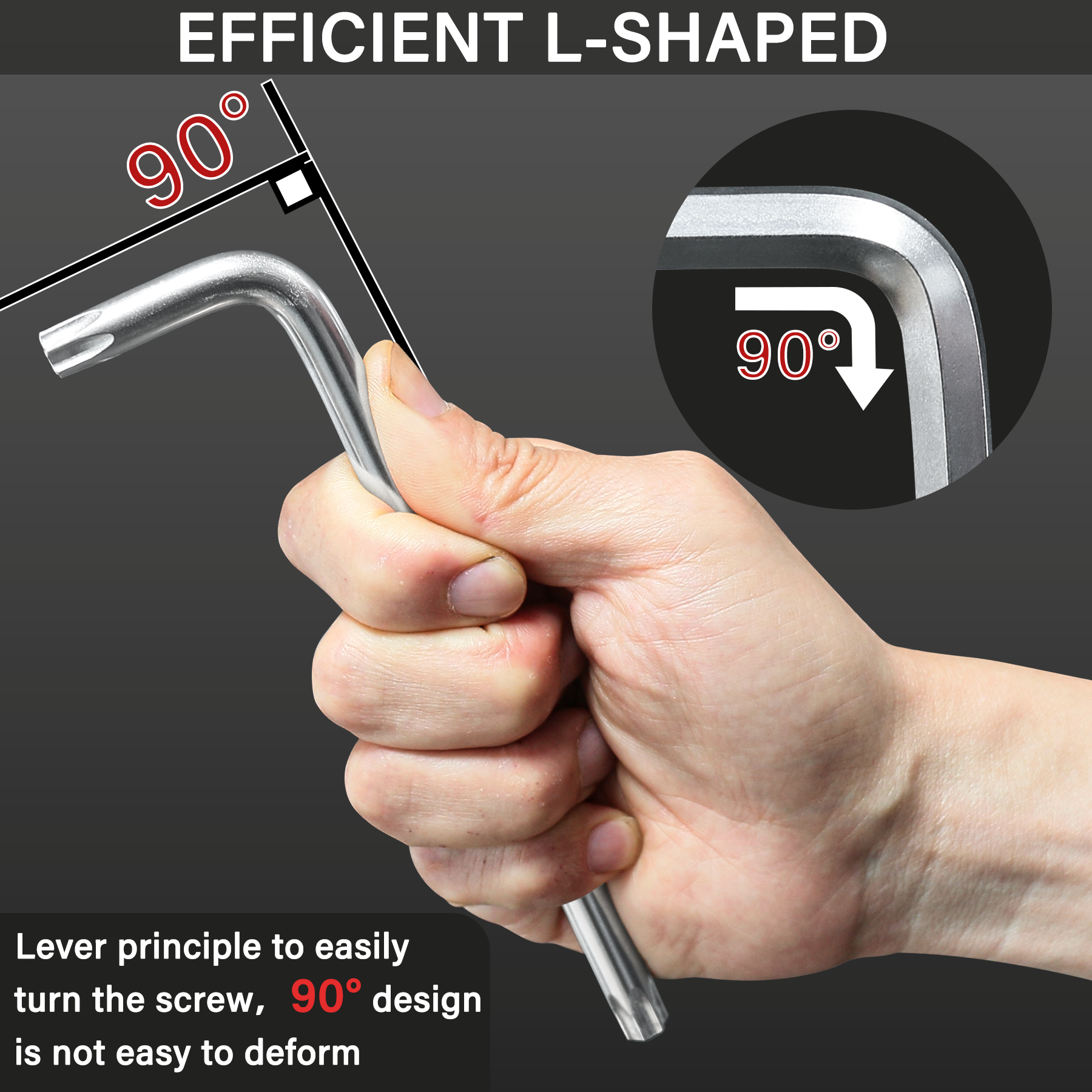 - EFFICIENT L-SHAPED DESIGN - Long/short arm design for longer reach in deeper work situations on the long end and strengthened leverage for tighter fasteners in narrower space on the short end
