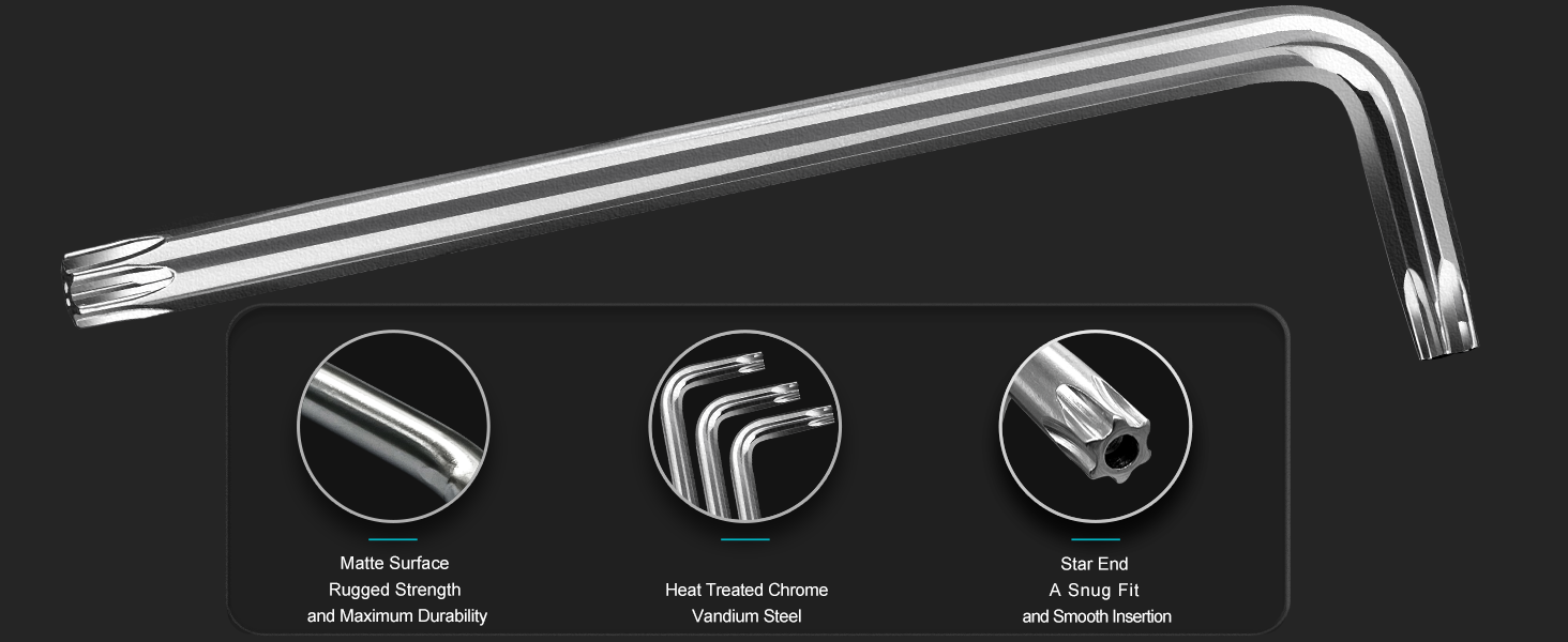 - MORE SIZE COVERAGE - Includes 9-pc star key wrenches: T10, T15, T20, T25, T27, T30, T40, T45, T50. Come in a sturdy hinged case with dedicated slots for secure storage and high-visibility sizes marked or easy selection & organization