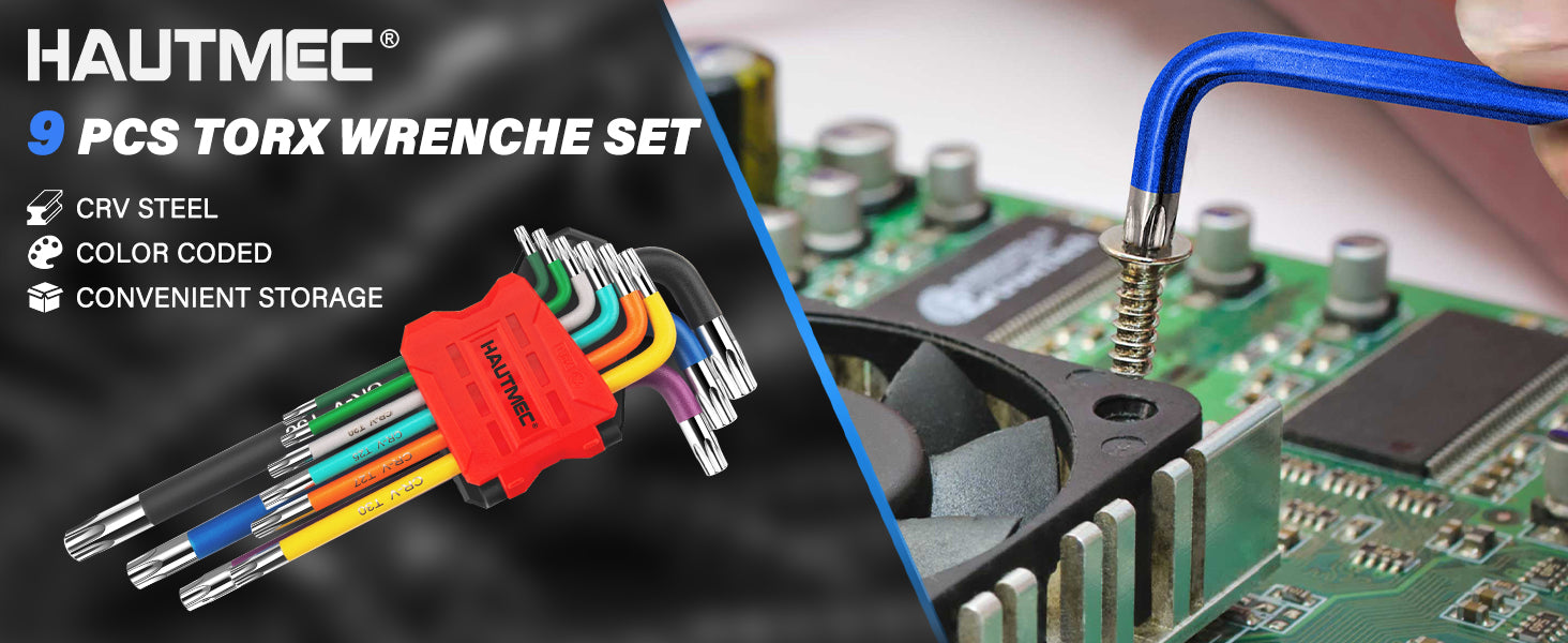 - [Keeps Tools Organized]: The HAUTMEC star hex key set is organized in a wall-style dispenser case, which is a engineering ABS plastic, resists impact, crushing, and protects tools from collision and wear inside the toolbox. Each star wrench set has its dedicated slot for tidy storage and easy inventory, preventing loss, making it easy to carry to any job site.