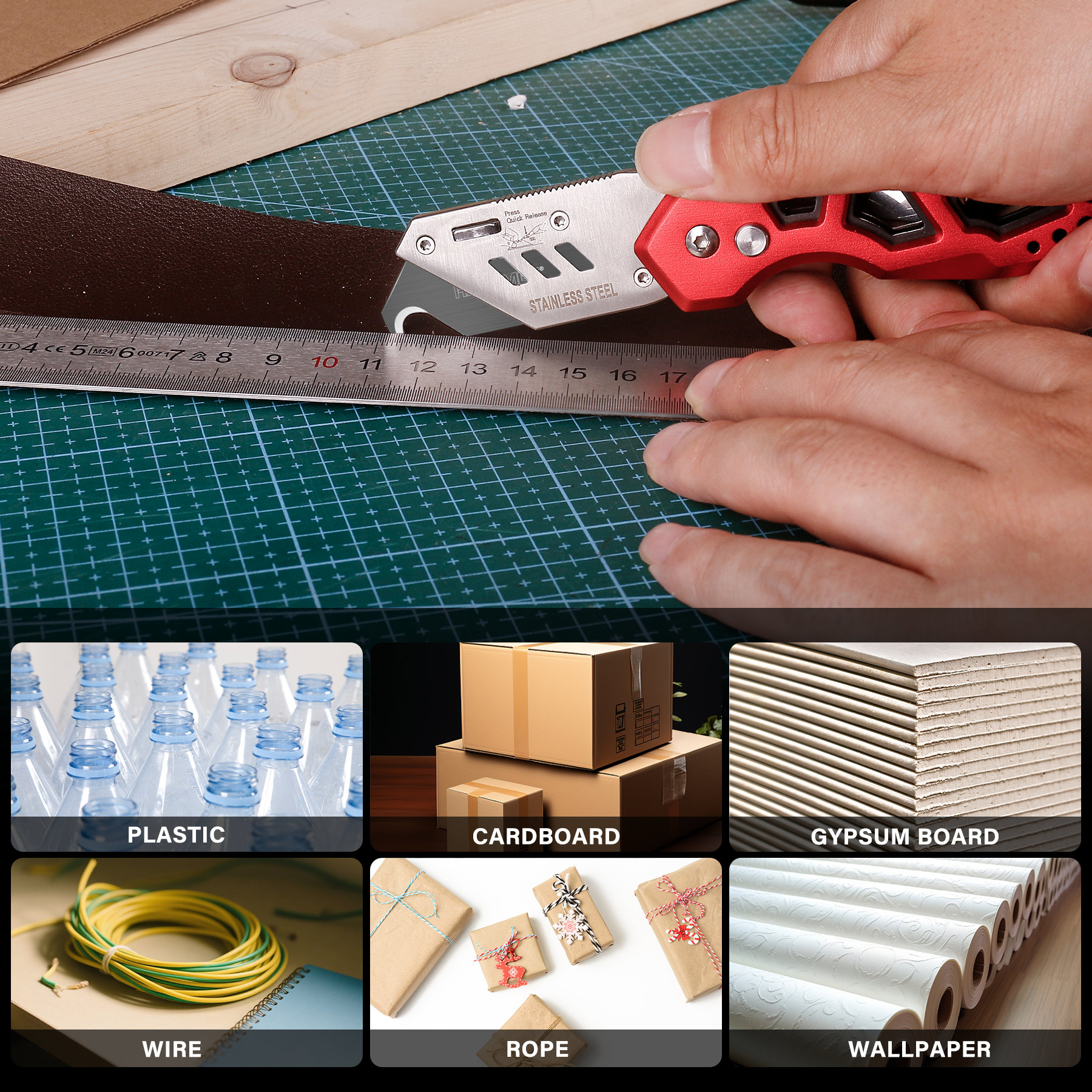 - 【Wide Applications】Deep hook profile help making cuts through thick materials, engineered to trim roof materials, linoleum, carpets, sheets and more other heavy-duty construction materials