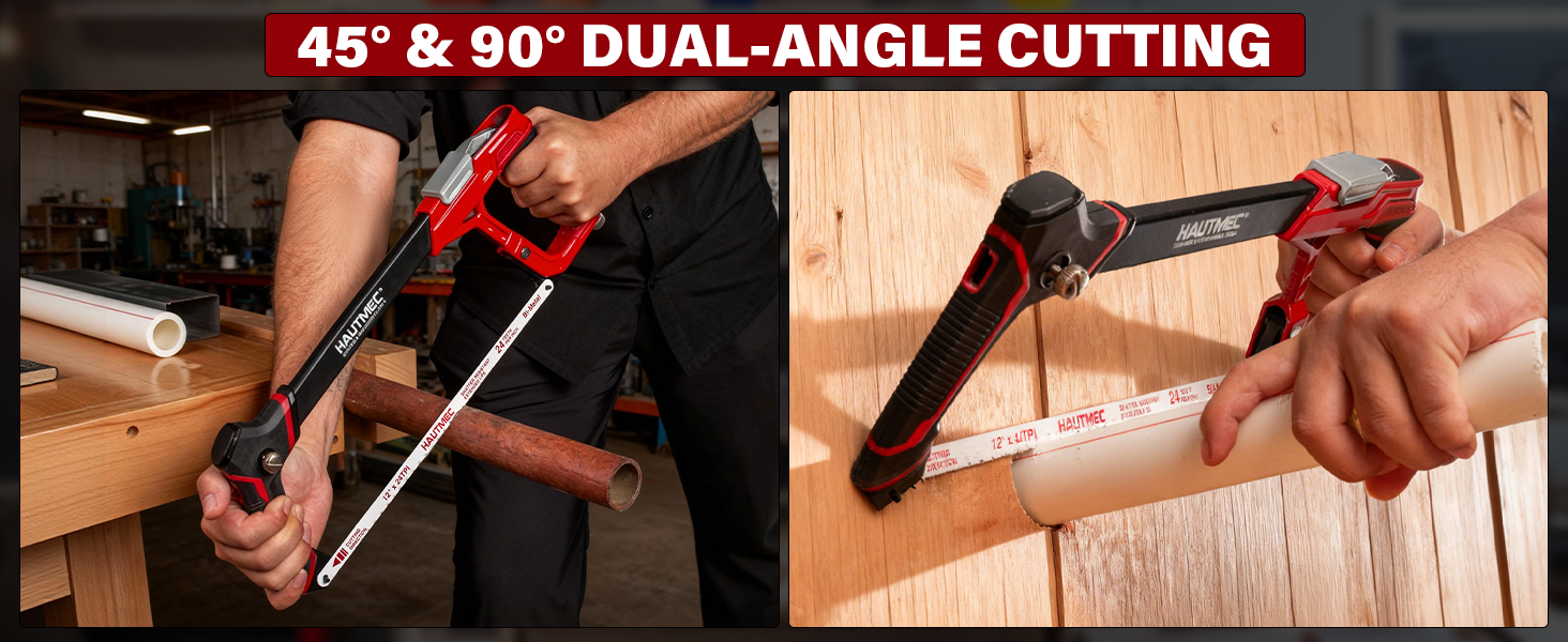 - 【45° & 90° Dual-Angle Cutting】Blade can be easily positioned with mounting pin between 45° for flush cuts and 90° for straight cuts in tight and long reach spaces—perfect for pipework, framing, or sheet cutting at multiple angles