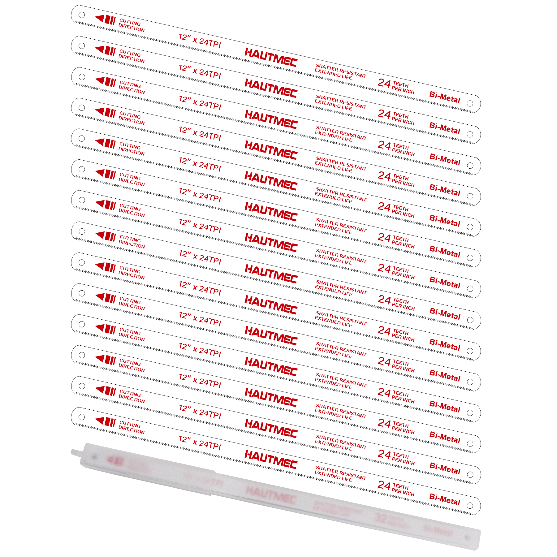 HAUTMEC 12" Hacksaw Blades Replacement Bi-Metal (100 Pack) 24 TPI High Speed Steel Grounded Teeth HT0017-100PC