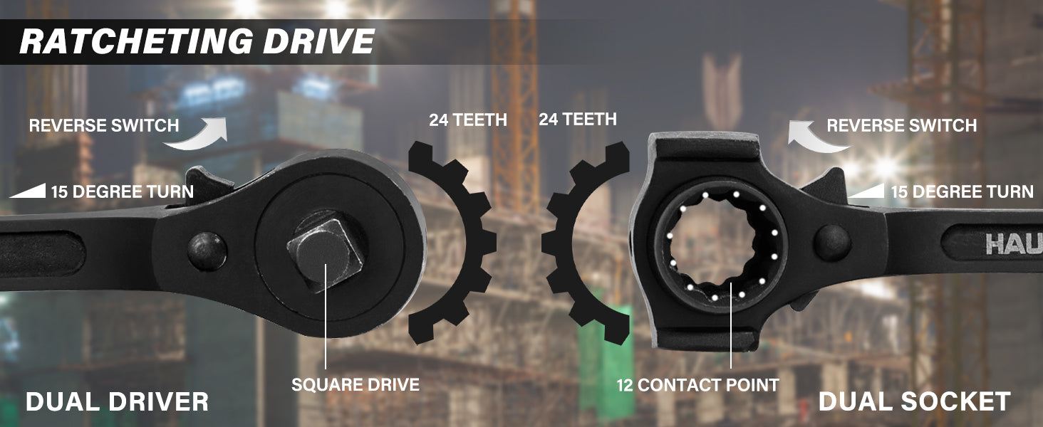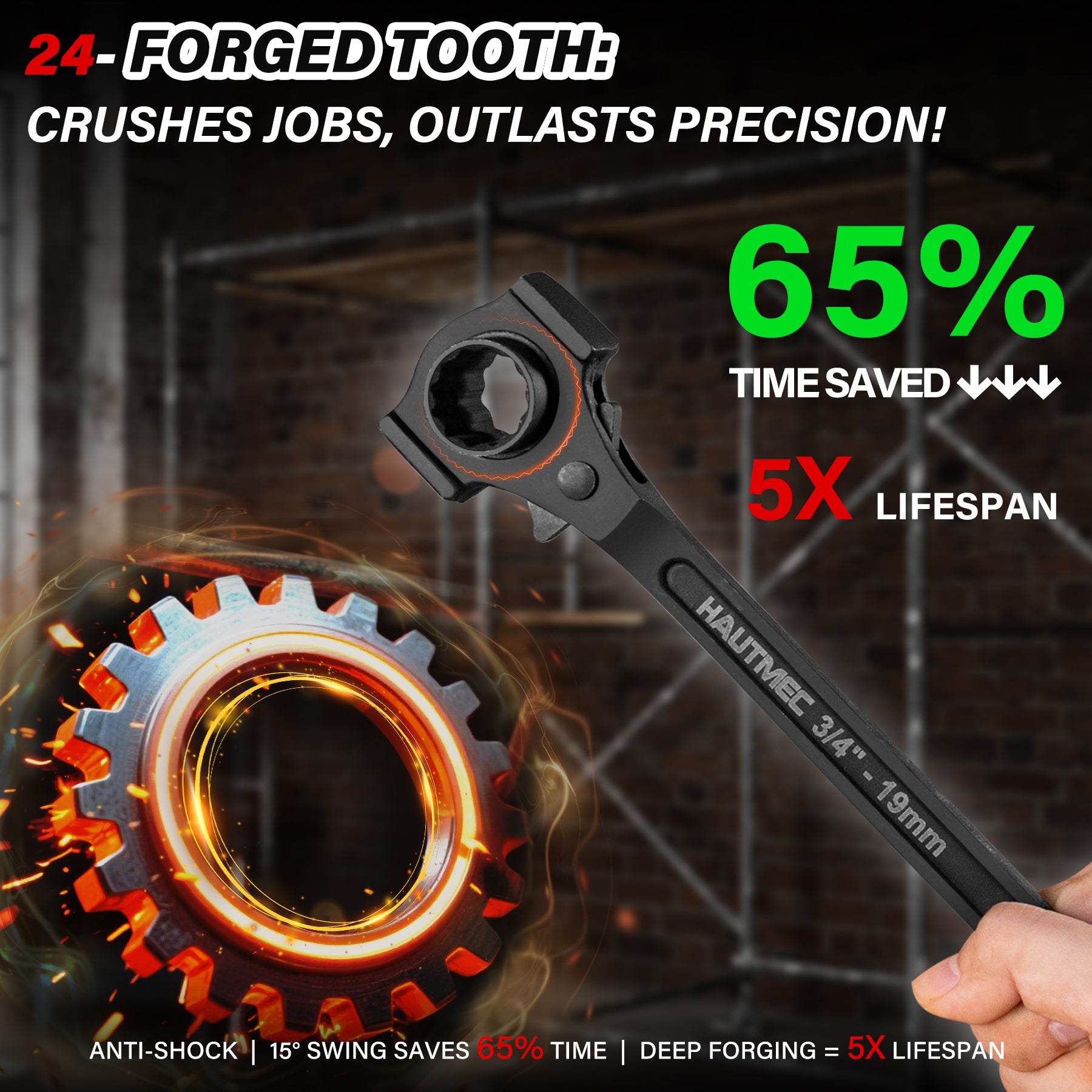 - [24-TOOTH FORGED RATCHET]: Ratcheting scaffold tools heavy-duty 15° swing outlasts precision gears, clears scaffold gaps faster, 24 deep-forged teeth take direct hammer strikes (unlike shatter-prone 72T gears), compact swing zips through pipe clusters without removal, saves hours on steel jobs.