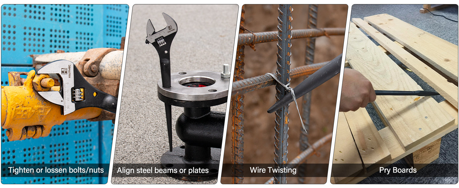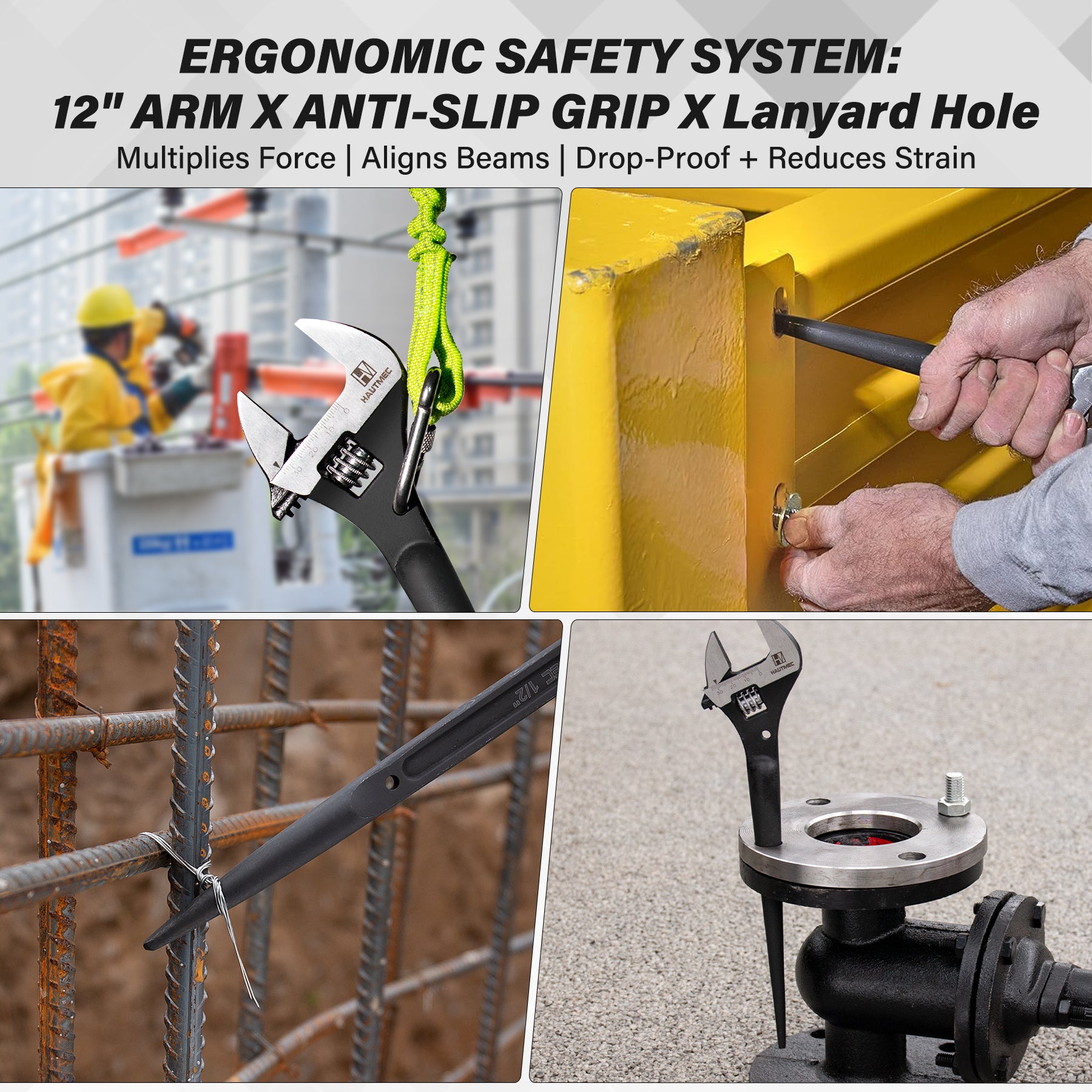 - [ERGONOMIC & SAFETY DESIGN]: Leverage Arm + Anti-slip Grip + Lanyard Hole. Extended handle boosts leverage against frozen bolts, tapered pry tail aligns steel beams. Integrated lanyard port enables harness connection– prevents drops + reduced muscle strain.