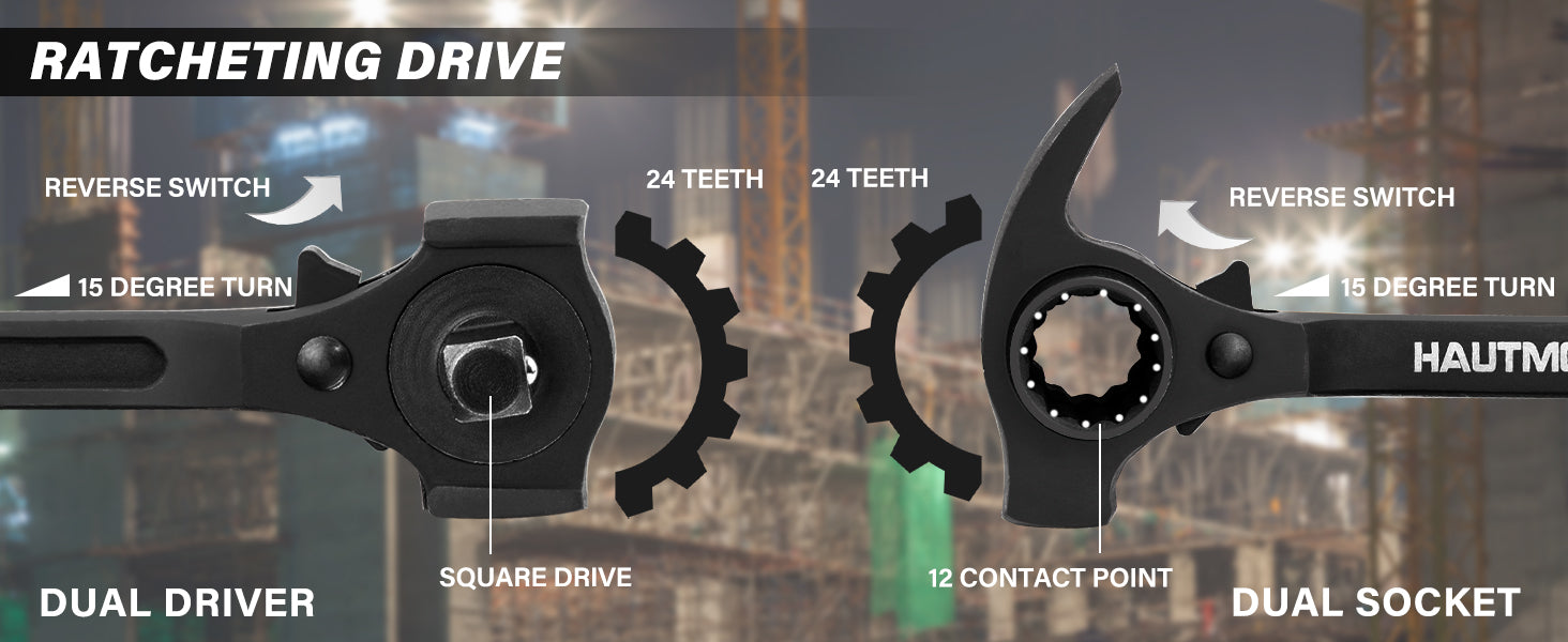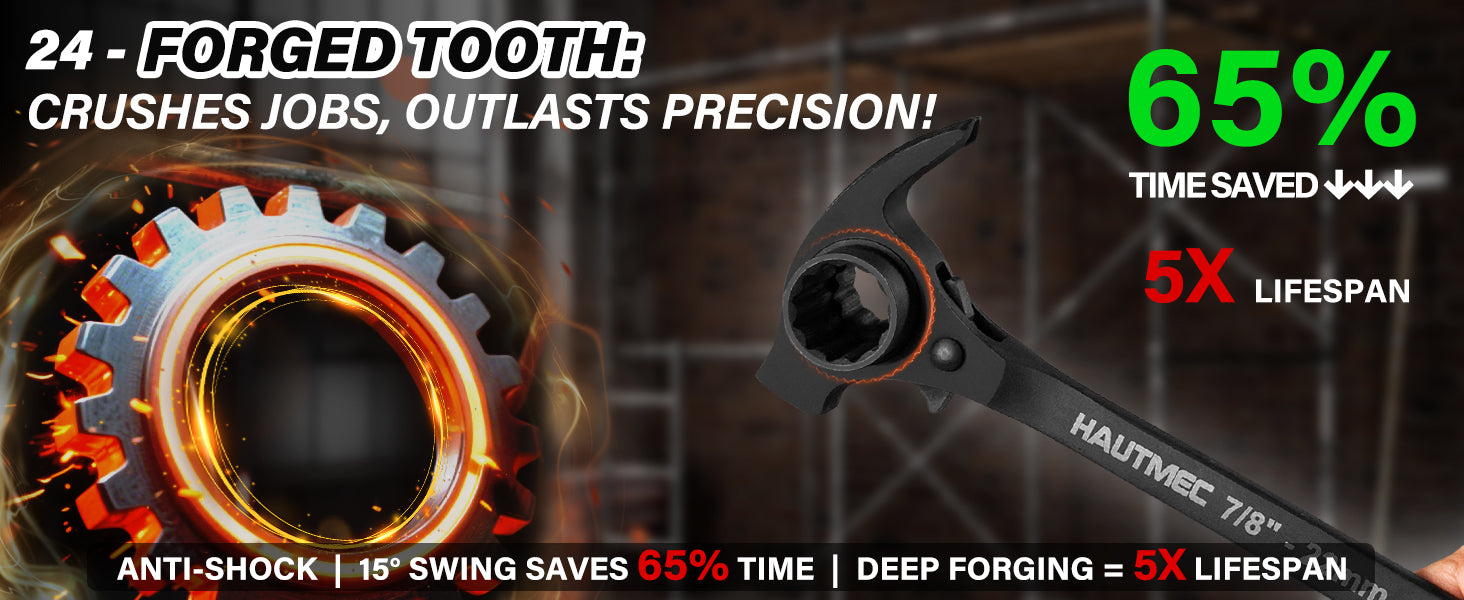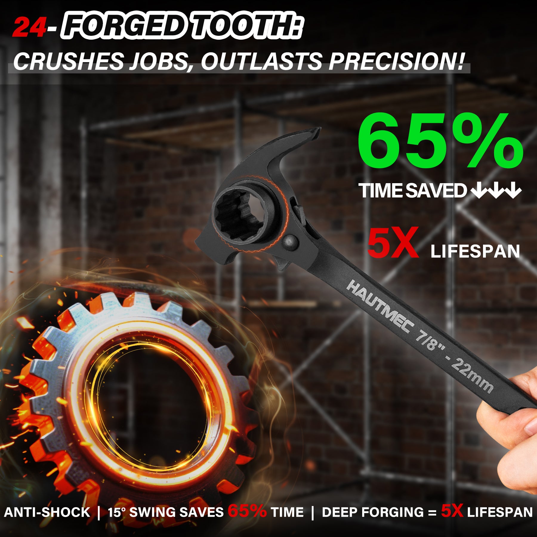 - [24-TOOTH FORGED RATCHET]: Ratcheting scaffold tools heavy-duty 15° swing outlasts precision gears, clears scaffold gaps faster, 24 deep-forged teeth take direct hammer strikes (unlike shatter-prone 72T gears), compact swing zips through pipe clusters without removal, saves hours on steel jobs.