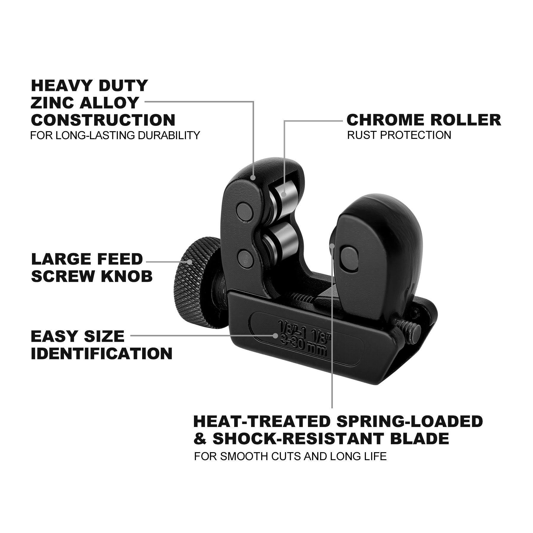 - Wide Applications: Suitable for cutting pipes with an outer diameter from 1/8" to 5/8". Perfect for cutting copper, aluminium, thin-walled stainless steel pipes and other thin pipes or tubes